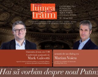 Mark Galeotti, expert în istoria modernă, politica și securitatea Rusiei, profesor onorific la University College London și director general la Mayak Intelligence, o firmă de consultanță și cercetare specializată în relațiile cu Rusia, va vorbi, duminică, 22 mai, de la ora 17, despre „Noul Putin”. Invazia Ucrainei ne dezvăluie un nou Putin – nu mai este jucătorul geostrategic atent și calculat, ci un om furibund care-și asumă riscuri, un bătrân grăbit. Este acesta cu adevărat „un nou Putin”? Sau putem vedea rădăcinile acestei schimbări în evoluția lui ca lider? Și ce ar putea însemna această turnură pentru noi toți în viitor? Conferința va fi urmată de un dialog cu Marian Voicu, jurnalist și realizator al emisiunii Breaking Fake News.