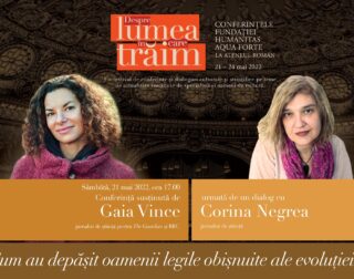 Seria anuală de conferințe și dialoguri culturale şi ştiinţifice Despre lumea în care trăim este organizată de Fundaţia Humanitas Aqua Forte, în parteneriat cu Editura Humanitas și Asociația ARCCA și își propune, la fel ca în edițiile precedente, să aducă în fața publicului teme actuale, abordate de personalități publice, specialiști și cercetători recunoscuți în domeniile lor și de comunitățile științifice din care fac parte.