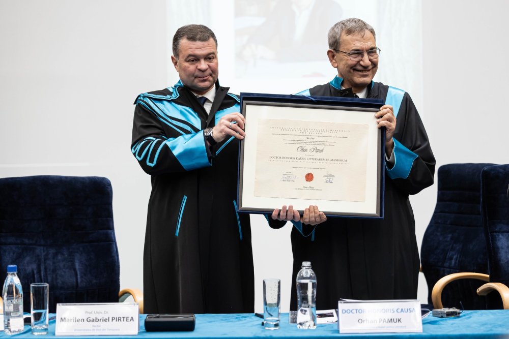 „Suntem onorați de intrarea distinsului laureat Nobel în rândurile comunității noastre academice. Prin acordarea titlului de Doctor Honoris Causa Literarum Humaniorum, Universitatea de Vest îi mulțumește scriitorului turc Orhan Pamuk, cu gratitudine pentru încurajarea de a ne face să credem într-o lume cu mai multe centre decât margini”, a declarat rectorul UVT, Marilen Gabriel Pirtea.