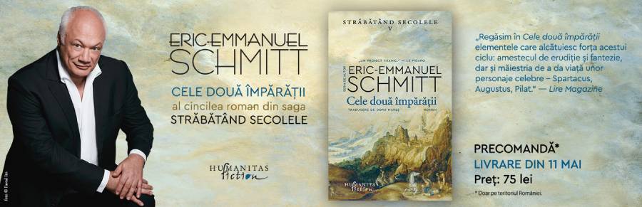 Cele două împărății, cel de-al cincilea roman din monumentalul ciclu Străbătând secolele, de Eric-Emmanuel Schmitt, va fi publicat de Editura Humanitas Fiction în seria de autor dedicată acestui scriitor, traducerea fiind semnată de Doru Mareș.